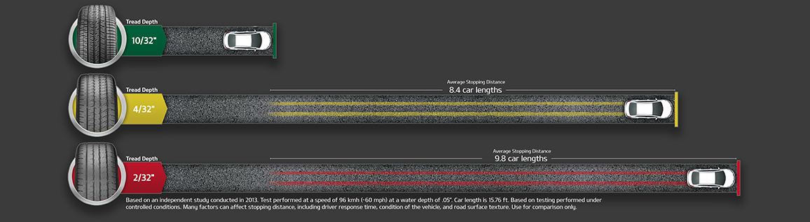 While your stopping distance may vary, newer tires can help you stop sooner.